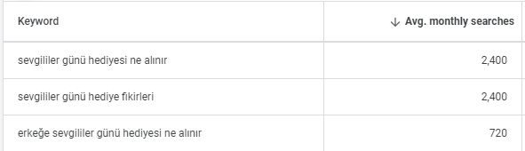 Sevgililer günü hediyesi ne alınır? Sevgililer günü hediye fikirleri gibi hacimli anahtar kelimeleri hedef alarak blog içeriği üretebilir ve bu dönemde artan hacimlere yanıt verebilirsiniz.